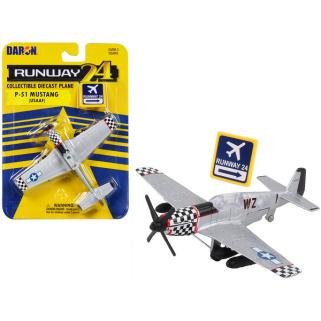 Runway24 P-51 Mustang Silver 4.25" with Runway Sign